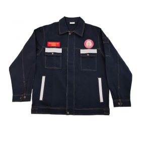 ★5:高性能防護面料,顏色為藏青色,加入高可視的檸檬綠色,左前胸、后背需采用熱轉(zhuǎn)印反光識別技術(shù),夜間具有安全警示功能。